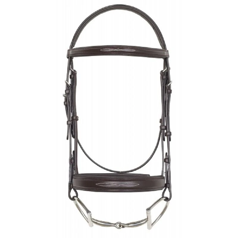 Wide padded fancy stitched square raised browband and noseband. Padded Comfort Crown design with decorative stitching. 5/8″ laced reins included.