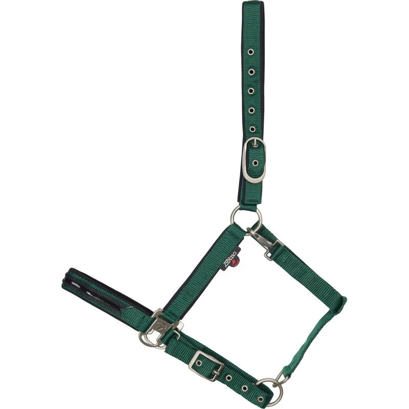 The Catago Attitude halter is made of nylon, with a soft neoprene padding, lightweight, matte finish hardware, and patent piping across the nose.