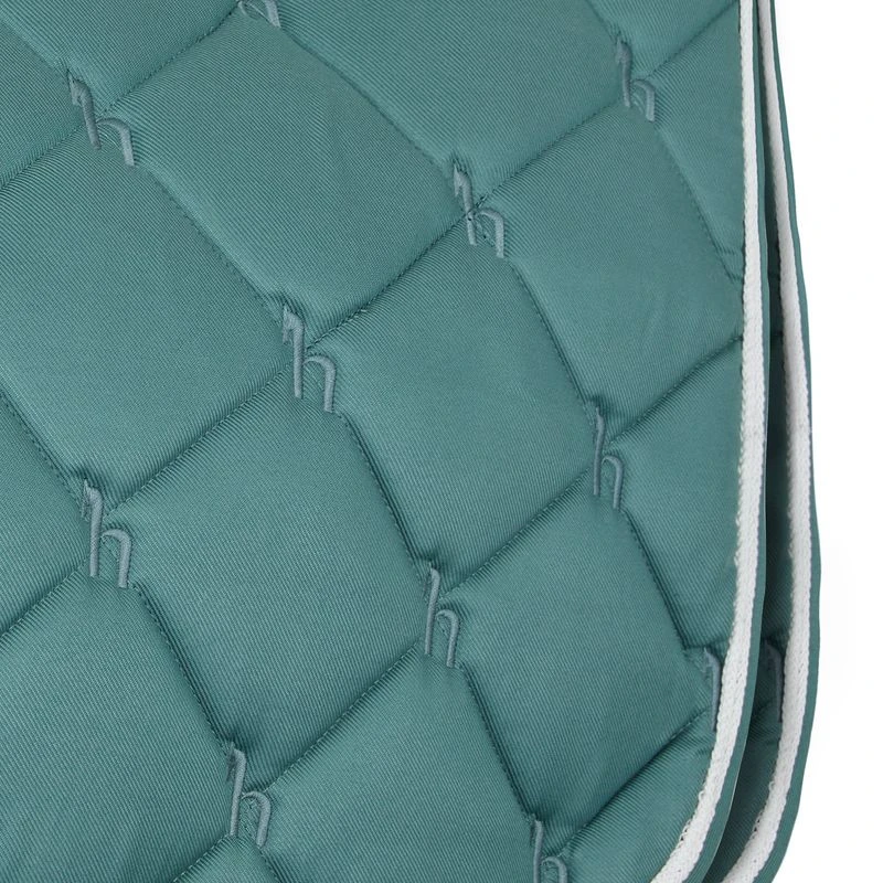 The Horze Ghent saddle pad features faux fur at the withers. Quick-dry lining keeps your horse comfortable. Rombe quilting and the braided trim make for an elegant look. Soft colors are easy to incorporate into your tack. Pair this saddle pad with our matching Horze Ghent brushing boots or bell boots and ear net. Also available as all purpose version.