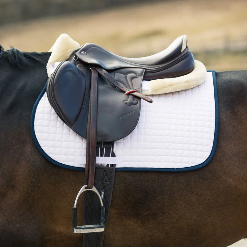 This shock-absorbing Horze Half Pad will eliminate pressure points and help your saddle fit better to ensure a comfortable ride for you and your horse. The half pad secures to the saddle with hook-and-loop fasteners and is trimmed with faux-fur at the withers and edges. Cotton/Polyester.