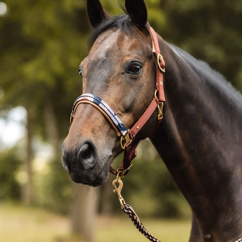The Terrazzo is an elegant halter with crystal noseband in Terrazzo pattern and metal fittings in satin gold color.