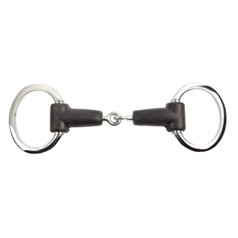 The thicker mouthpiece is softer on the corners and the bars of the mouth and the pressure created by the reins is spread over a larger surface area. The soft rubber encourages the horse to chew and salivate. The single joint applies a nut cracker action which applies pressure to the tongue, the bars of the mouth and the horse’s palate.