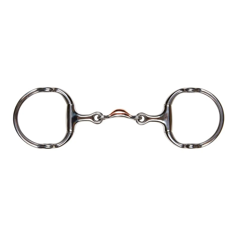 The quarter moon joint causes pressure to be applied to the tongue for greater control. The copper lozenge helps to promote salivation. This bit encourages the horse to lift off the forehand.