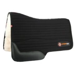 This pad features removable full length Pro Impact Protection inserts. It has a channel quilted non-slip military-grade fabric topper, and the bottom is WoolBack, 100% virgin wool lining.The high profile offers maximum wither clearance and correctly placed cut-out s offer a close-contact leg position. Hardy genuine leather wear leathers means the pad will last. Inserts are removable through touchtape closure on the spine. Dimensions: 28″ seat, 18″ front drop, 15″ rear drop