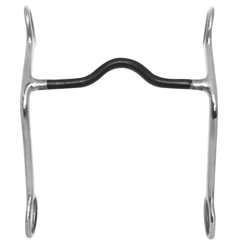 This is a basic Western curb with leverage action on the poll, and moderate pallet pressure when the bit is full engaged. Horses tend to like the flavor of the sweet iron.