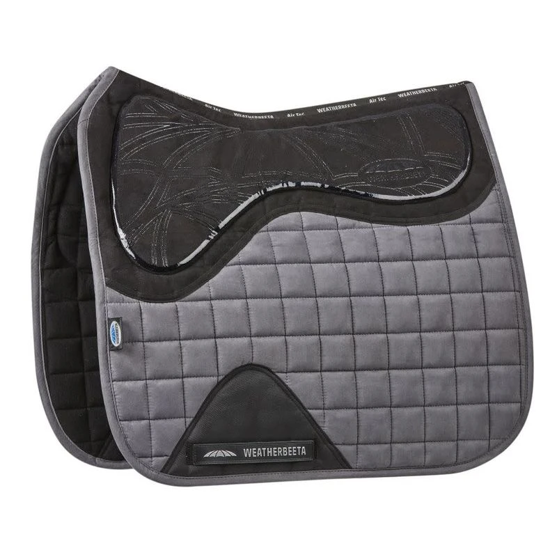 The Weatherbeeta Ultra Grip Dressage Saddle Pad features a silicone grip with memory foam padding situated under the saddle for ultimate comfort and practicality. The covered girth guard reduces excessive wear for added durability, and the durable suede fabric with a wick easy lining helps keep your horse cool, dry and comfortable. Designed with longer, straighter sides to fit dressage saddles..