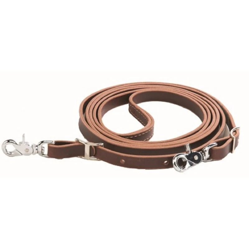 Soft latigo leather makes these reins great for training and competition. Burgundy latigo leather 5/8″, trigger snaps at bit ends and nickel plated conway buckles