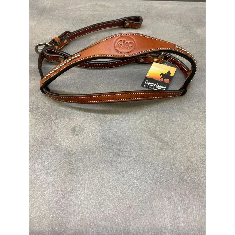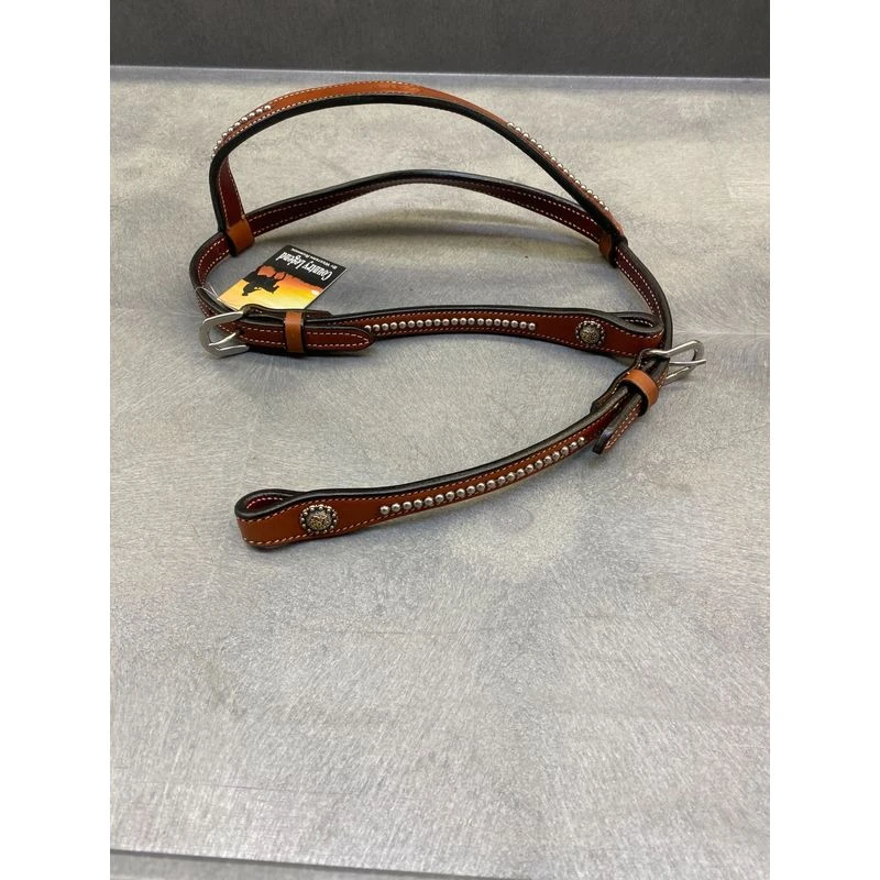 In true Western style, the Western Rawhide Dee Butterfield Long Cheek Browband Headstall with Dots is crafted in supple leather and accented with nickel plated spots.
