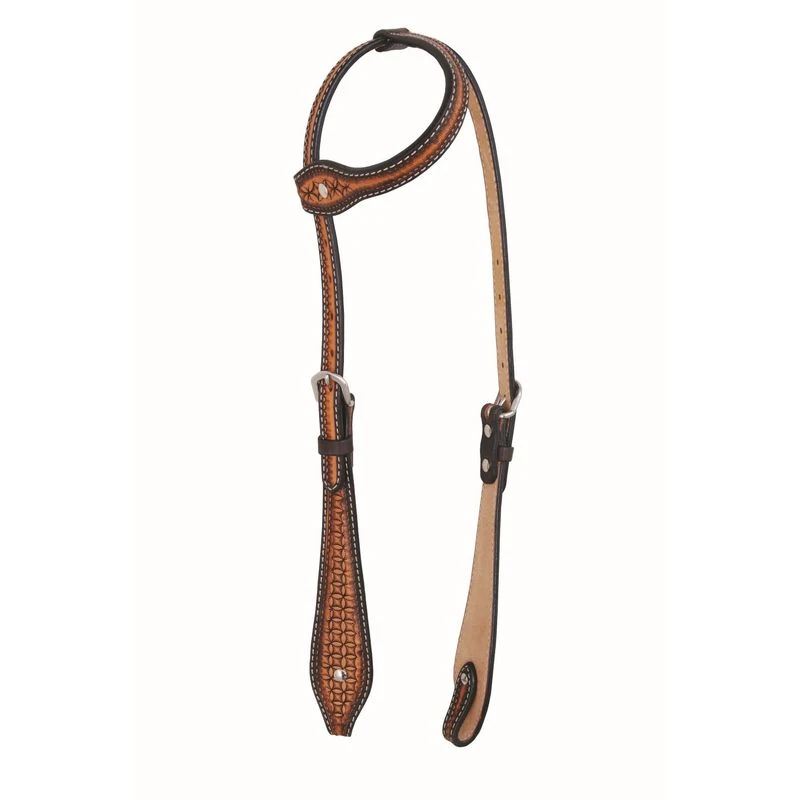 A gorgeous two-tone finished one ear headstall with infinity hand stamping. Tear Drop shape